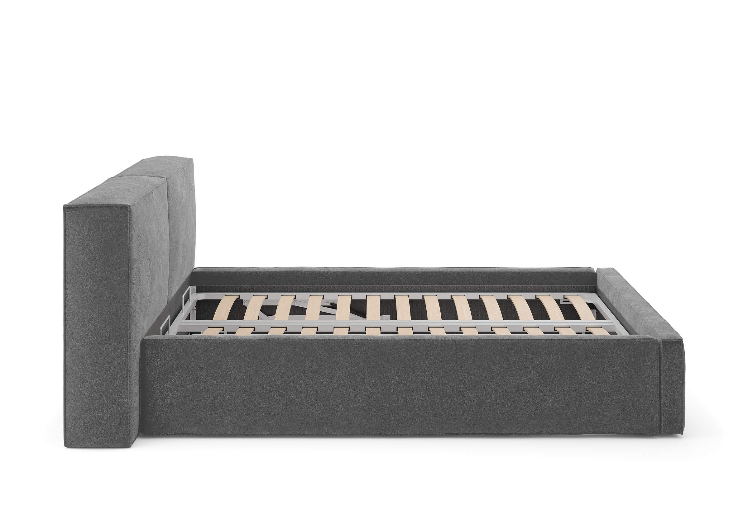 Возможна установка подъемного механизма со вместительным бельевым ящиком. Дно бельевого ящика легко сдвигается для обеспечения уборки под кроватью.